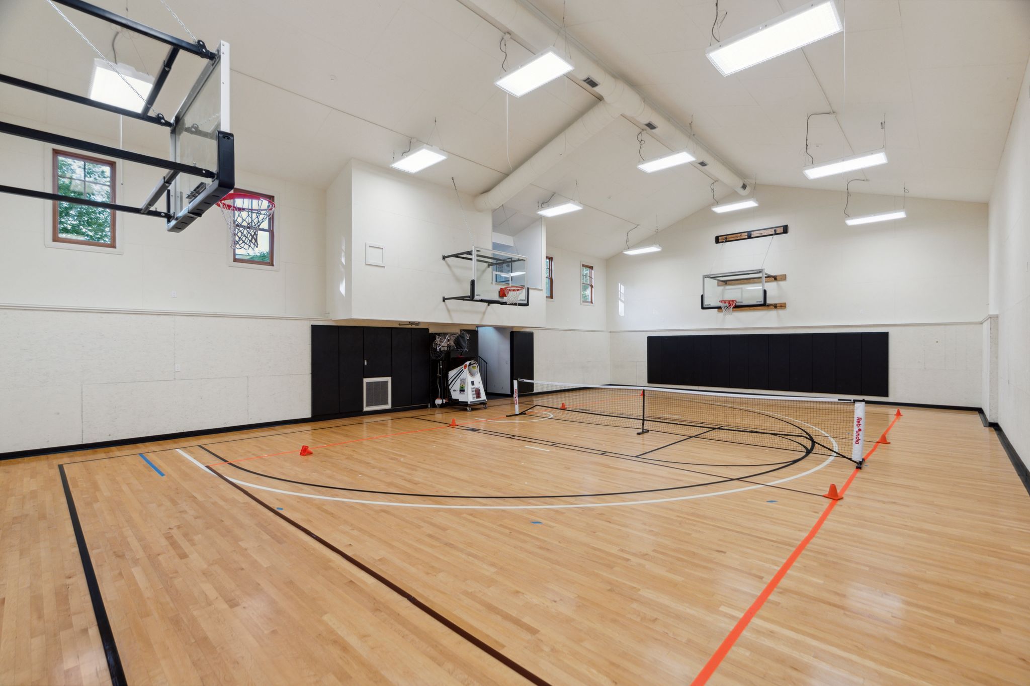 Outside, a separate structure currently houses space for basketball and pickleball, though it offers exciting potential as a guest house, artist studio, or additional recreational retreat.